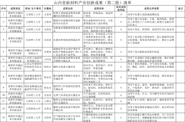 附件:山西省新材料產(chǎn)業(yè)創(chuàng)新成果(第二批)清單