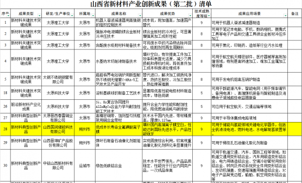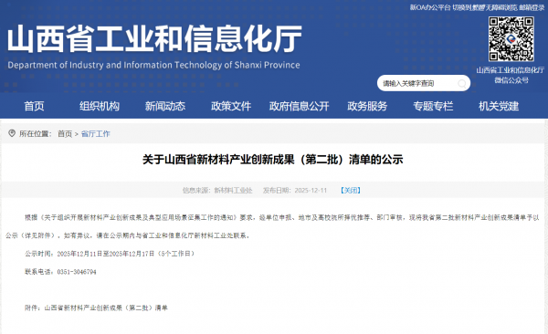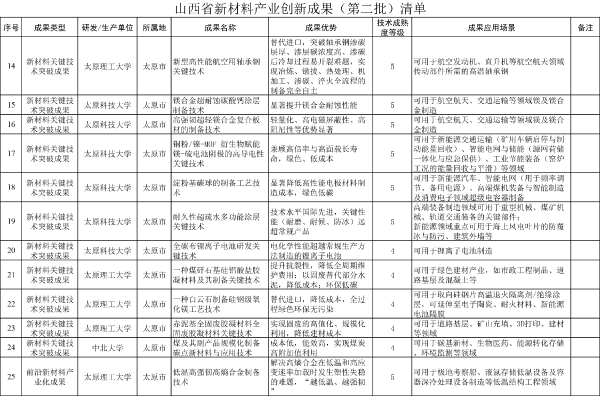 關(guān)于山西省新材料產(chǎn)業(yè)創(chuàng)新成果(第二批)清單的公示